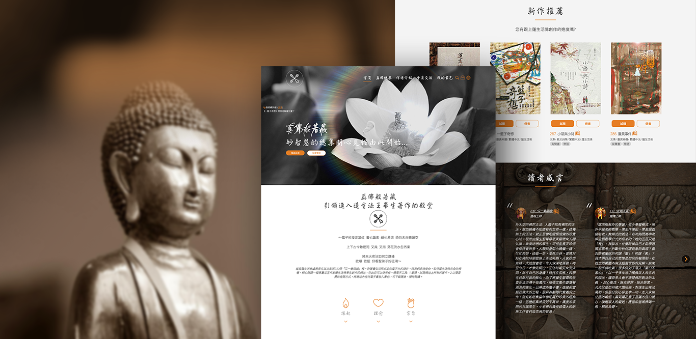 以維克專案【 真佛般若藏電⼦書網站 】為例,在功能的規劃上就客製包含了會員專區、電⼦書平台以及多國語系等功能。甚⾄是網站建置時,還客製了許多難字 ( 特殊字 ),這是網站套版做不到的功能,當時還是憑藉著設計⼈員和程式⼈員,⼀起合作才能達成的功能喔。